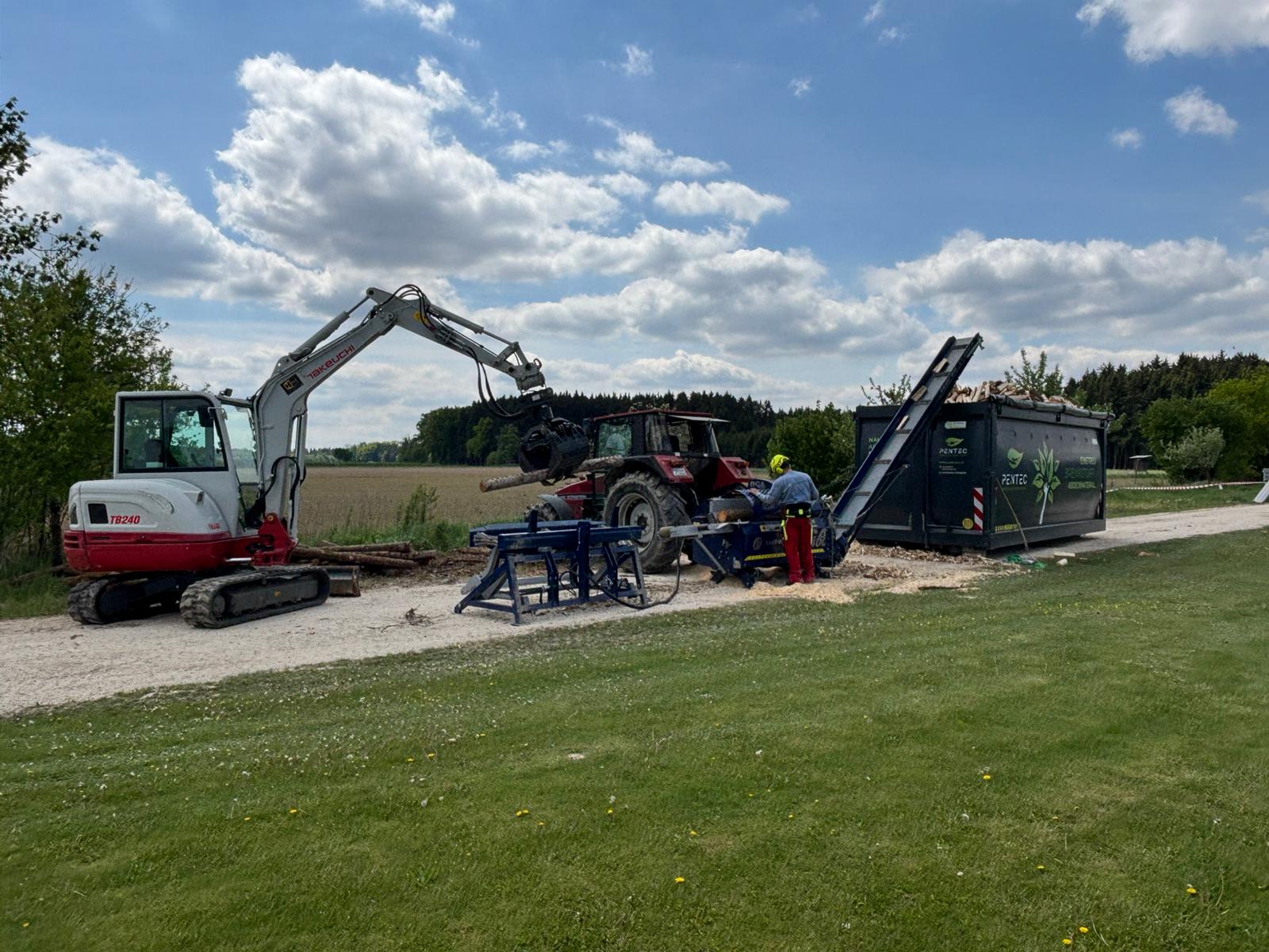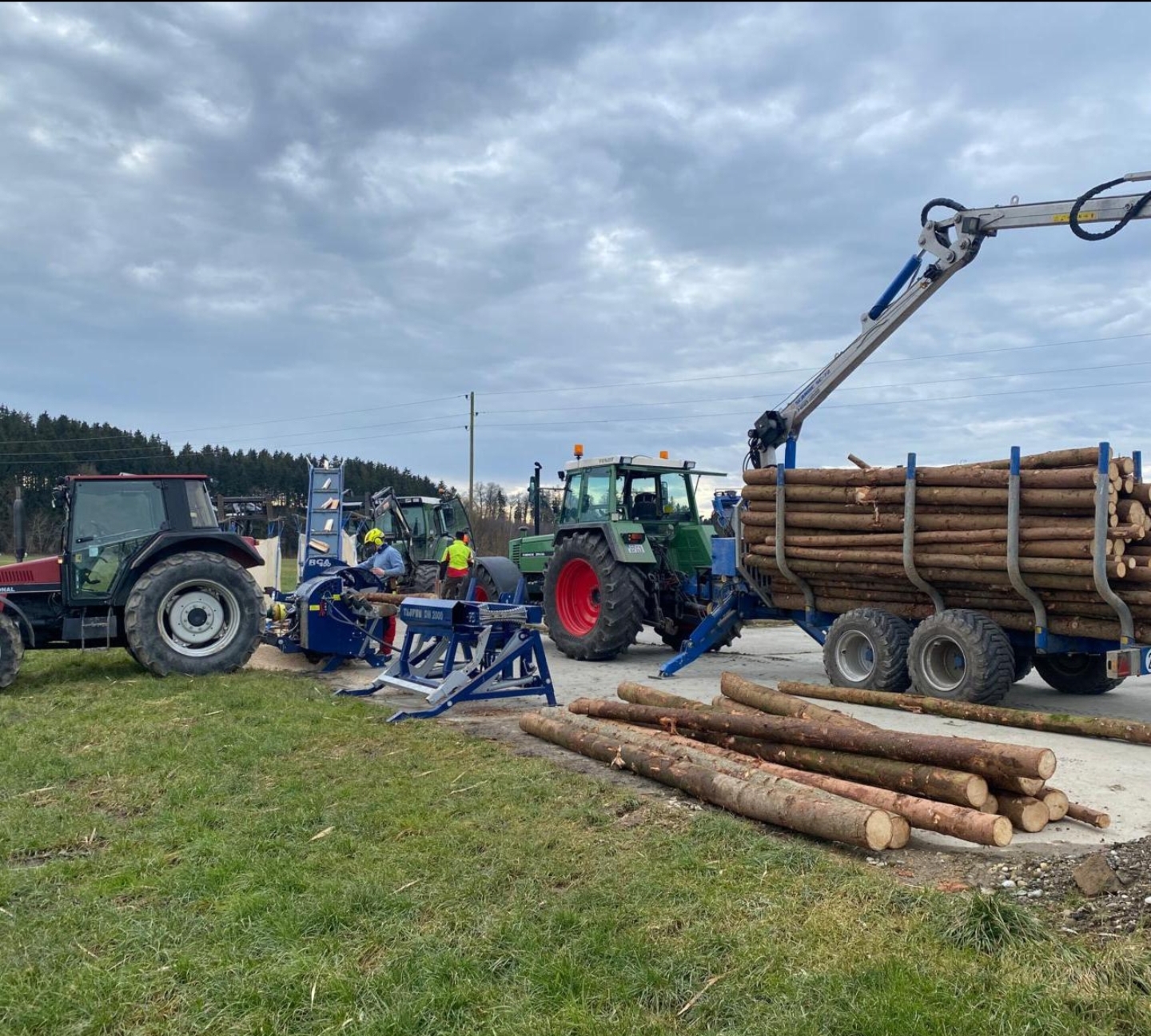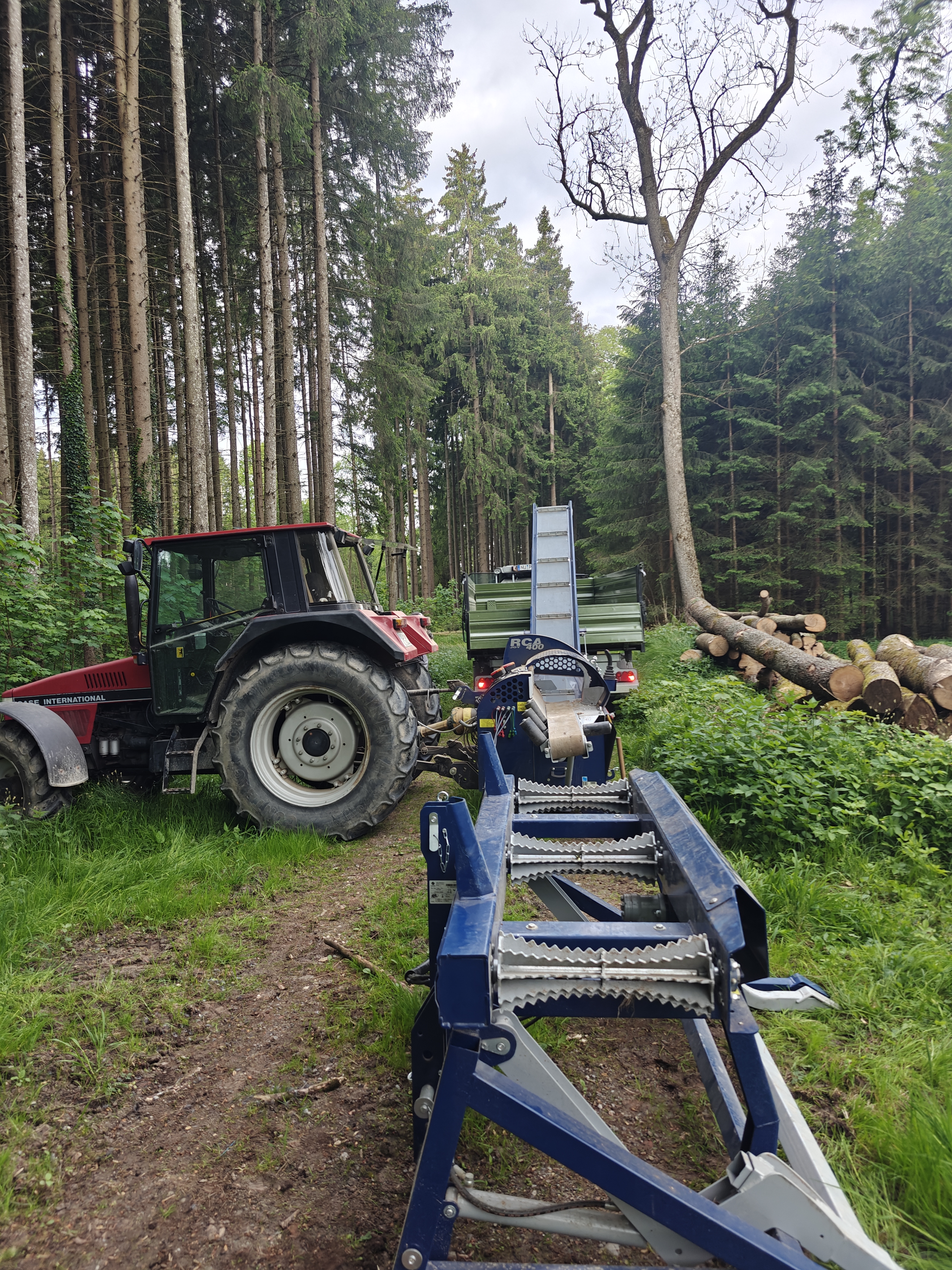 Die Baumstämme müssen regelmäßig an den Hebetisch gerollt bzw. transportiert werden. Gerne können sie diese Aufgabe übernehmen. Ansonsten kann diese auch durch uns erfolgen mithilfe eines Radladers. Zusätzlich benötigen wir etwas Platz um unsere Maschine aufbauen zu können. Hier schauen wir uns den Platz immer vorab einmal mit ihnen gemeinsam an.